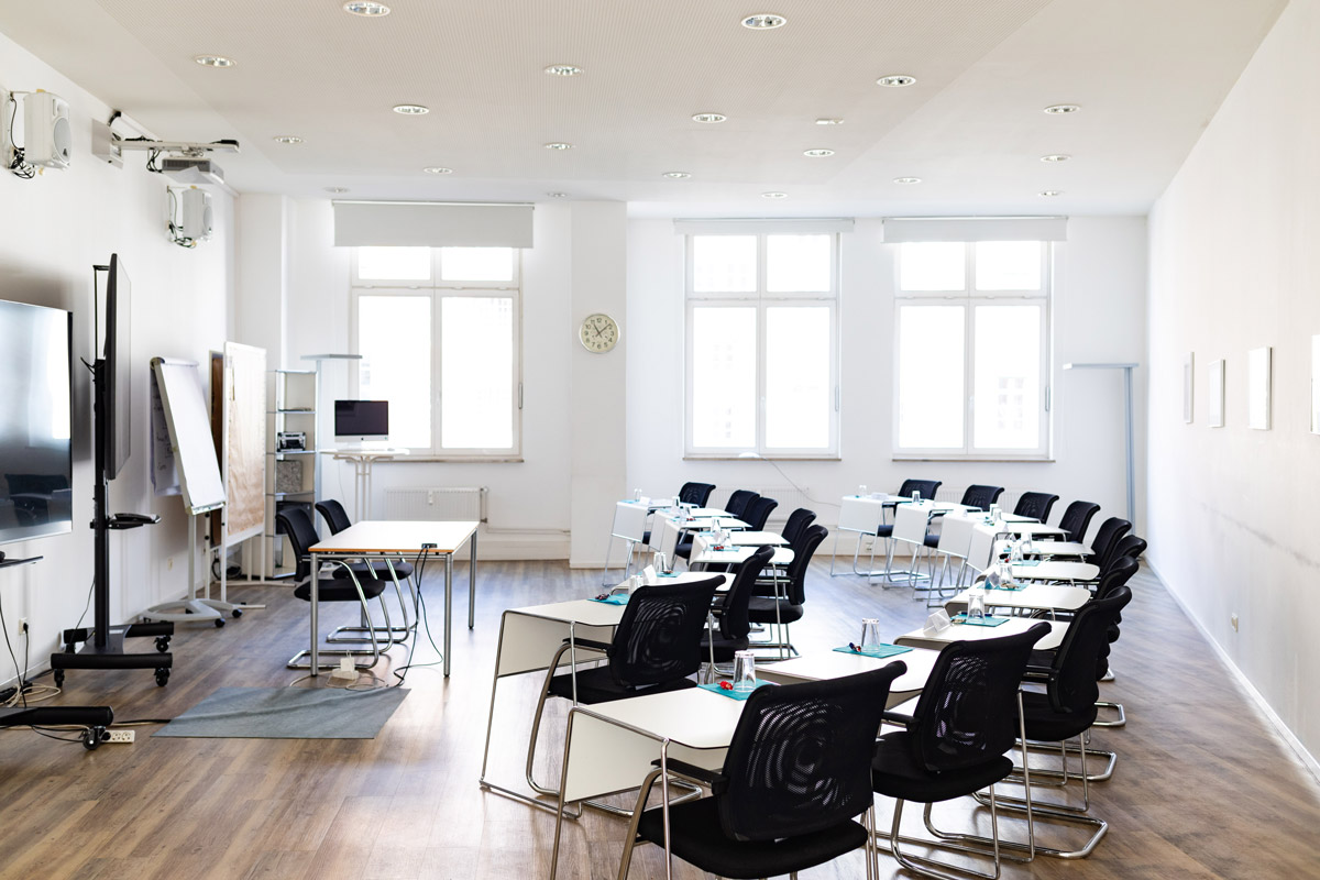 Unsere barreierfreien Räumlichkeiten liegen im Erdgeschoss und umfassen verschiedene Seminar- und Veranstaltungsräume. Alle Schulungsräume sind mit iMacs oder MacBooks, Beamer, Flipcharts, WLAN und Moderationskoffern ausgestattet.